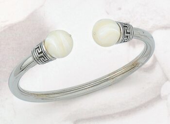Greek Key Meander Bangle with pearl stones