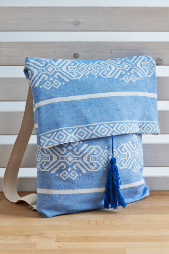 A beautiful hand loomed Greek beach bag of the Aelia Anna brand, which combines a traditional design with an elegant Mediterranean essence.