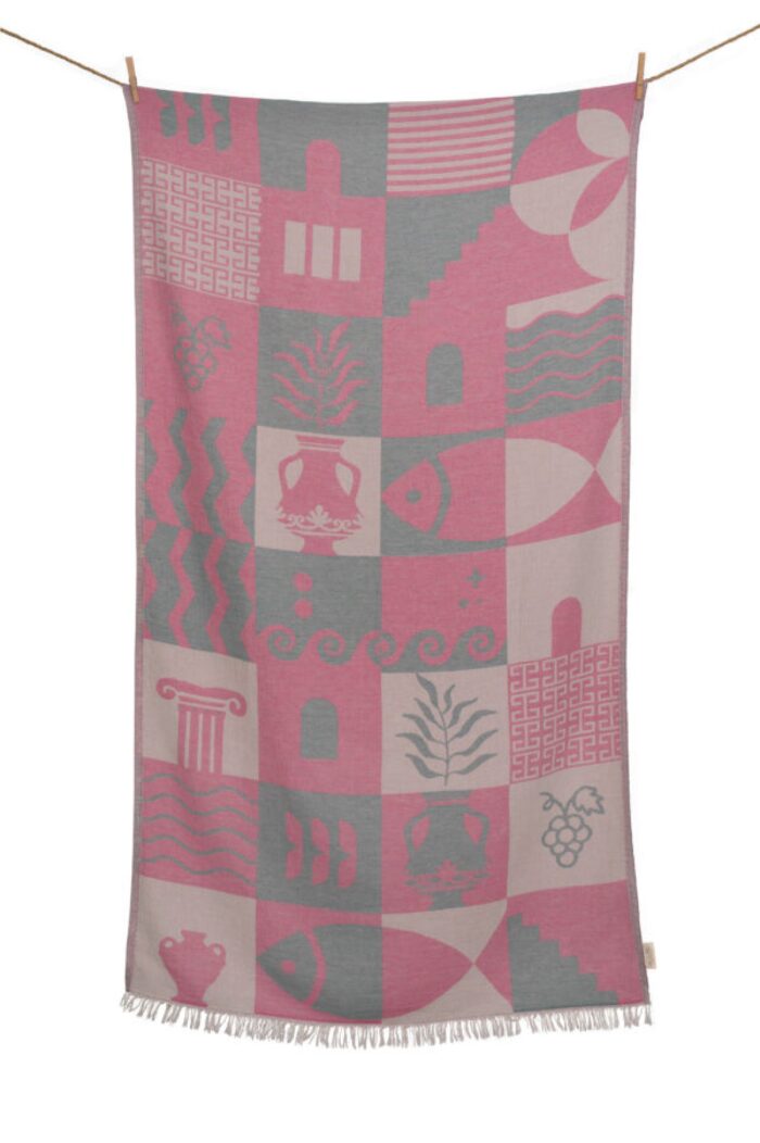 A beautiful peshtemal Greek beach towel of the Aelia Anna brand named after the historical town in the southwest Peloponnese, which combines modern design with an elegant Mediterranean essence.