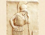 This votive relief is picturing “Athena mourning” and was found in the Parthenon.