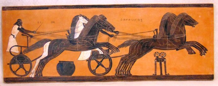 Beautiful fresco painting showing a chariot race at the ancient Olympic Games.(more information on the art of fresco wall painting…)