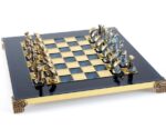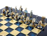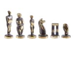 Our chessmen are made on a basis of an original zinc alloy, they are then specially processed to have the antique blue or bronze finish and finally varnished by hand. The chess boards are made of bronze and painted by hand. All the pieces are unbreakable and have a life time guarantee.