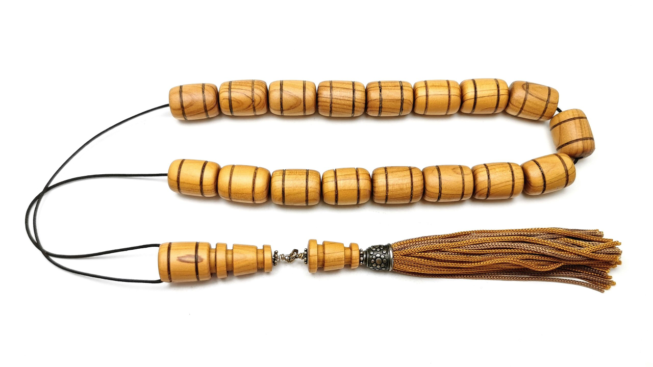 This is a beautifully handmade scented komboloi with 17 beads of genuine Greek Cypress tree wood.