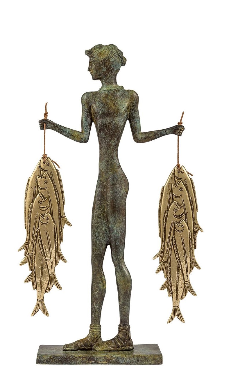 Bronze sculpture depicting the Fisherman of Santorini of the famous Santorini fresco (see https://www.hellenic-art.com/product/fisherman-of-santorini/)