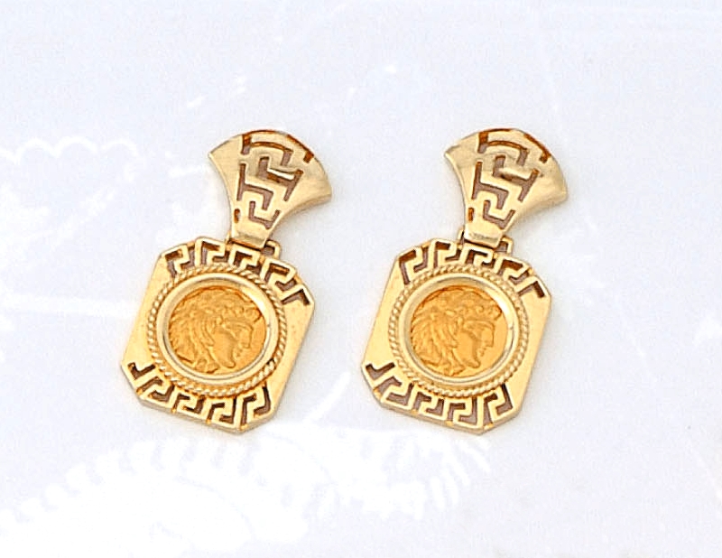 The earrings bear an ancient coin depicting Alexander the Great, the Greek Macedonian king that conquered half the known world in 330 BC. (find out more about Alexander the Great…)