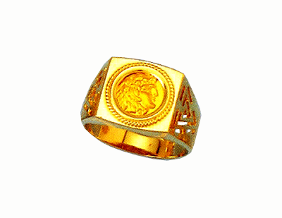 The ring bears an ancient coin depicting Alexander the Great, the Greek Macedonian king that conquered half the known world in 330 BC. (find out more about Alexander the Great…)