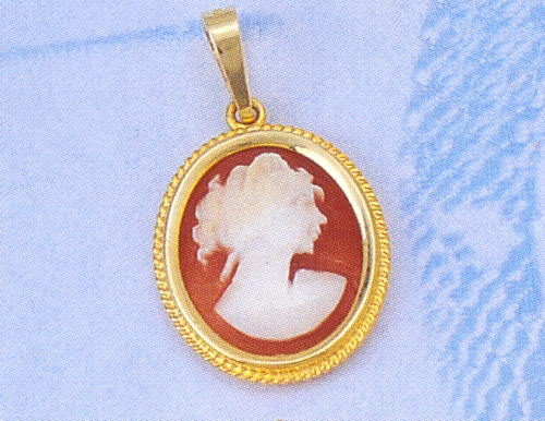 The pendant bears a red cameo stone depicting Aphrodite, goddess of beauty and love.