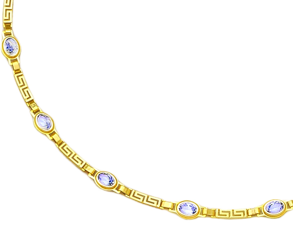 Questions about "Gold Bezel set Meander Necklace – Clear zirgons"?
