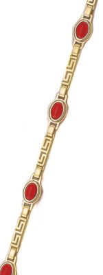 The bracelet is adorned with beautiful corel stones.