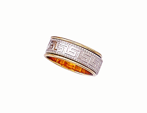 In this ring the Greek key pattern goes all the way around the ring making it ideal for a couple bound together by vows of love.