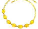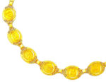 The necklace bears coins with symbols of ancient Greece, like the Parthenon, a trireme, the Minotaur, Alexander the Great, etc.