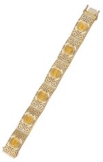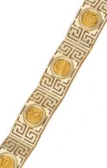 This stunning bracelet bears coins with symbols of ancient Greece, like the Parthenon, a trireme, the Minotaur, Alexander the Great, etc.