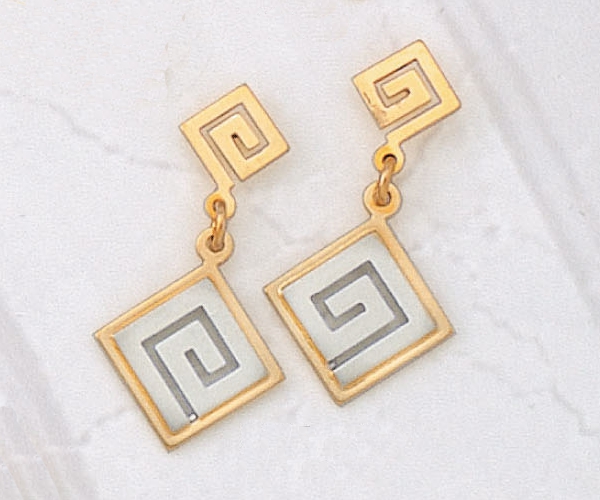 White gold Gold Greek Key Meander Earring