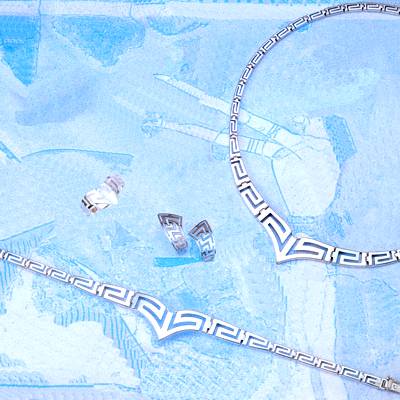 Beautiful Jewelry set consisting of a necklace, bracelet, earrings and a ring in the Greek key pattern, the symbol of eternal life, eternal love and eternal friendship.