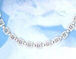 A stunning necklace crafted from polished, high-quality 925o sterling silver, exuding an elegant sheen. The design is inspired by the classic Greek key pattern, a continuous geometric motif symbolizing infinity and unity. This intricate pattern gracefully loops along the length of the necklace, each segment meticulously shaped into the iconic meandering lines that give a sense of rhythm and harmony.