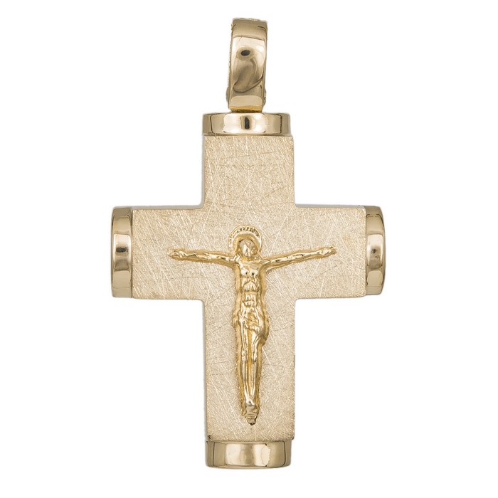 A Greek Orthodox cross with Jesus Christ in 14k yellow gold.
