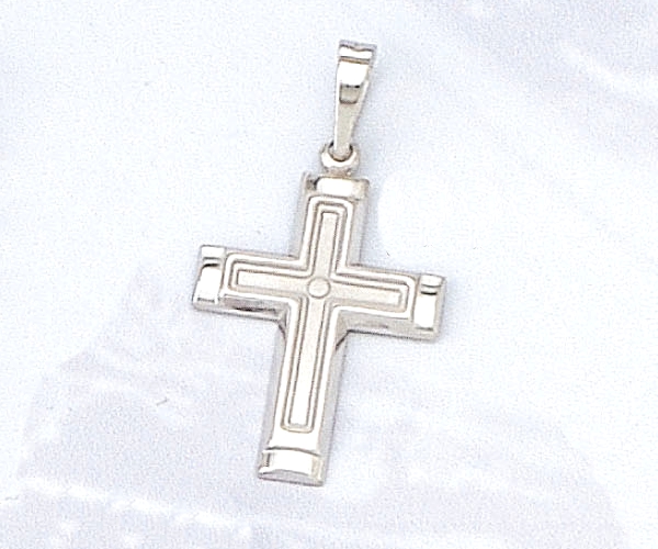 A refined and detailed Greek Orthodox-style pendant for every occasion. It features a layered design with a raised inner cross set within the larger outer cross. The inner cross has smooth, polished edges, creating a contrast with the recessed outer area, adding depth and texture to the piece. Each arm of the cross is slightly flared at the ends, with decorative accents resembling horizontal bars or small extensions, giving the design a distinct and elegant character. The craftsmanship highlights symmetry and attention to detail, making it both a beautiful piece of jewelry and a meaningful symbol of faith.
