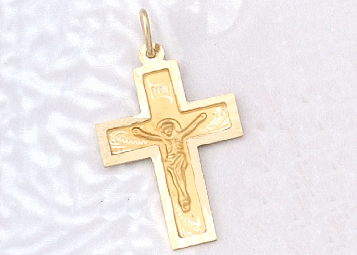 A Greek Orthodox cross depicting the Crucifixion of Jesus Christ.