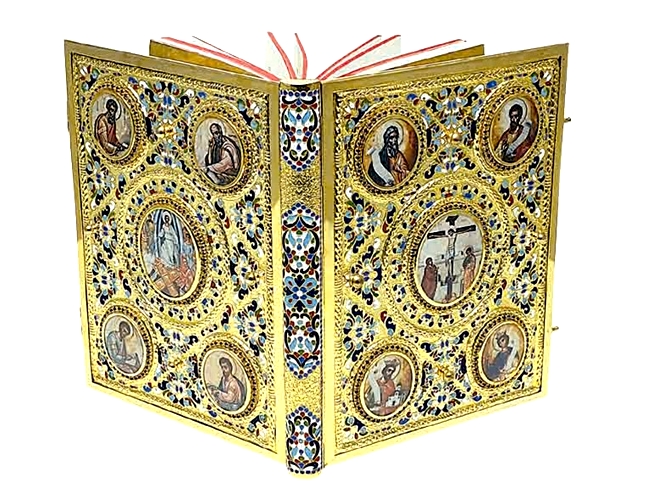 Masterfully handmade Gospel Book Cover used by the priests in the Greek Orthodox Churches for the liturgy.