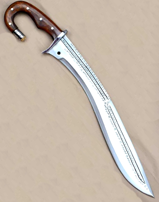 A fully functional sharp edged version of a Kopis, a slashing sword or falcatta, very effective at close combat, perhaps the most lethal of all Greek swords with a handle made of wood.