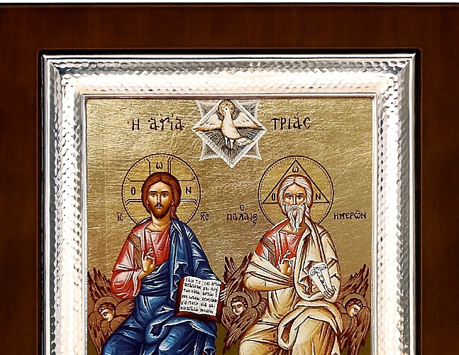 An exquisite Greek Orthodox Icon of the Holy Trinity – Father, Son and the Holy Spirit.