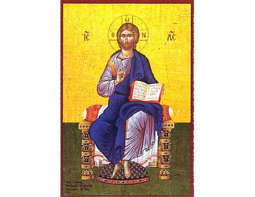 A beautiful reproduction of the Mt. Athos 13th century icon of Jesus Christ Enthroned, handmade & hand painted by an expert Greek hagiographer.