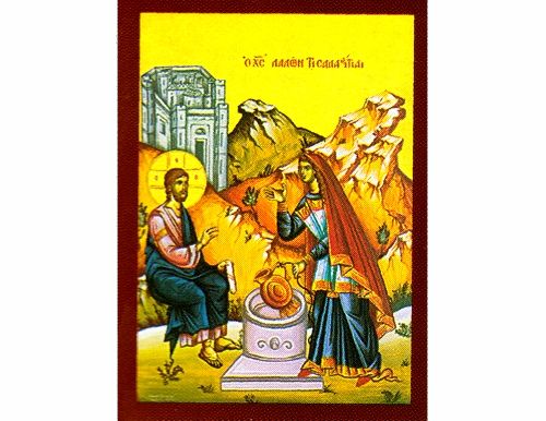 A beautiful Greek Orthodox icon of Jesus Christ & the Samaritan Woman, handmade & hand painted by an expert Greek hagiographer.