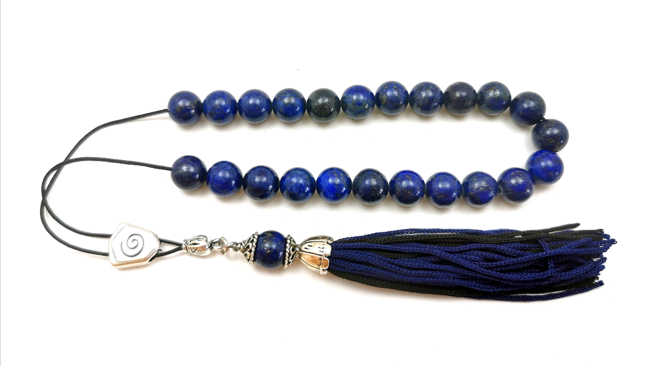 This is a beautifully handmade komboloi with 24 beads of genuine lapis lazuli stone.