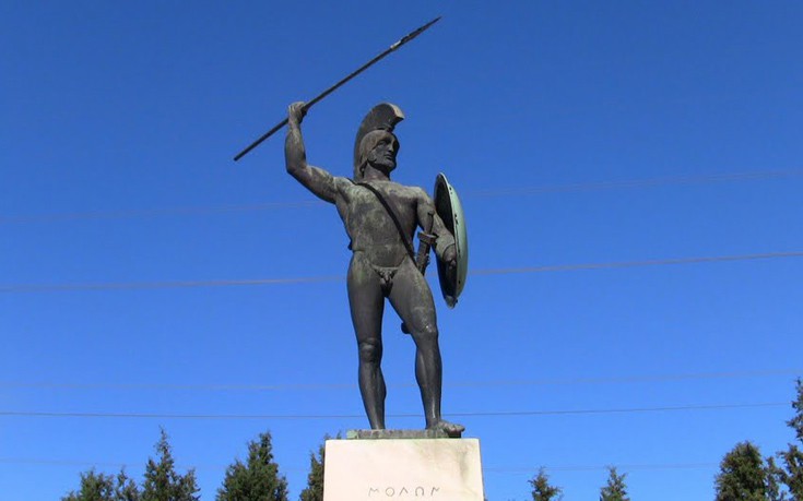 An exact reproduction of the statue of Leonidas which stands at the battle site of Thermopylae. Fully made of bronze.