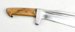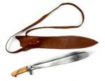 This Greek Macedonian Kopis, used by the cavalry of Alexander the Great, has a blade crafted from high carbon steel; the thin blade profile matched with a central spine for rigidity ensures that this Kopis is a quick and fast striking blade and not a ponderous performer. The guard is steel and the grip is finished with two halves of wood solidly riveted with the steel tang.