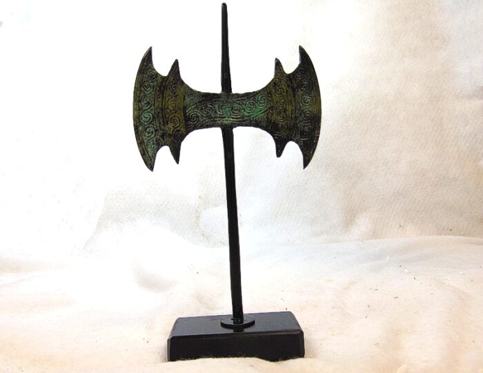 Of all the Minoan (ancient Cretan civilization) religious symbols, the axe was the holiest. Stylized double axes such as this detailed reproduction, consecrated shrines in ancient Cretan homes and palaces. Full sized double axes were used by priests to kill sacrificial bulls in ceremonies to propitiate Zeus.