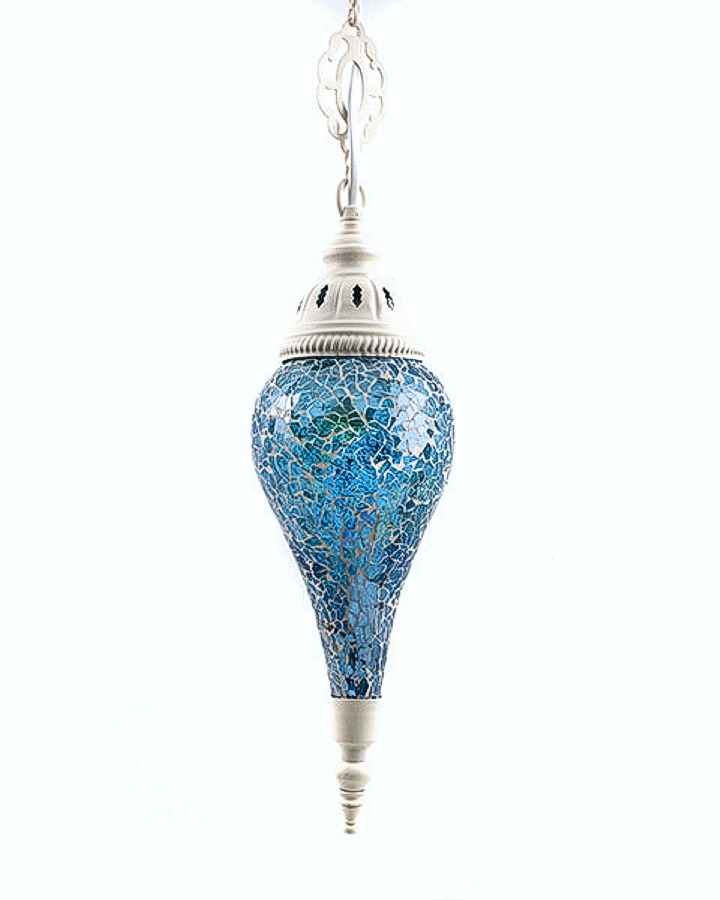 A beautiful handmade mosaic hanging lamp fitted with an electric cable, which hangs from the ceiling or a wall with a long chain.