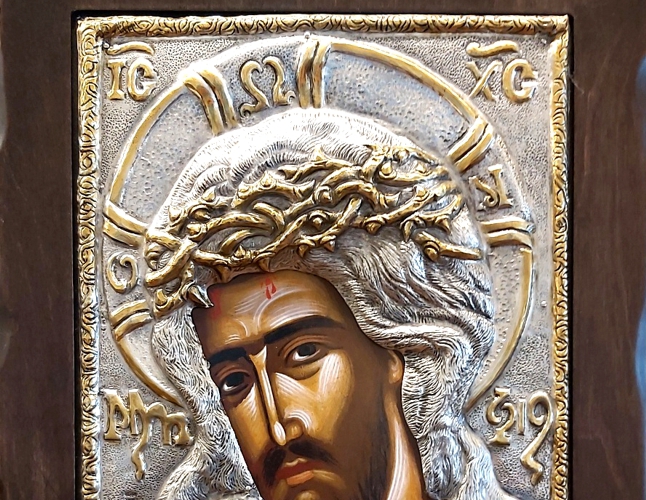 An exquisite silver Greek Orthodox icon of Jesus Christ the Bridegroom.