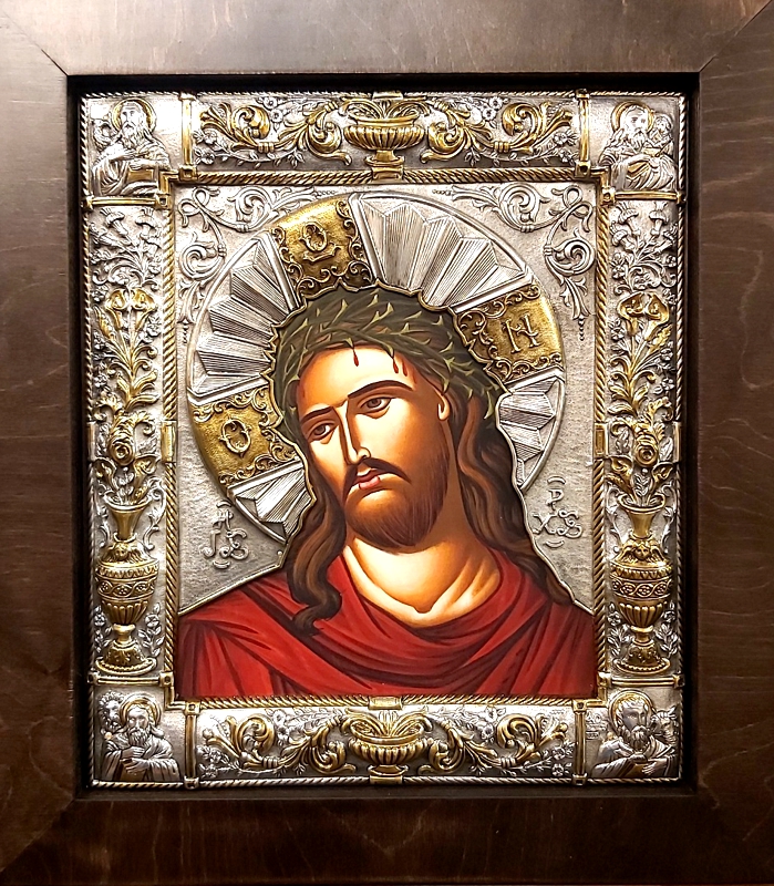 An exquisite silver Greek Orthodox icon of Jesus Christ the Bridegroom.