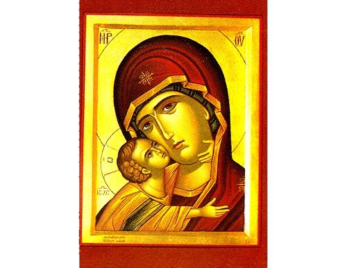 A beautiful Greek Orthodox icon of Panaghia Glykophilousa (Virgin mary kissing Jesus affectionately), handmade & hand painted by an expert Greek hagiographer.