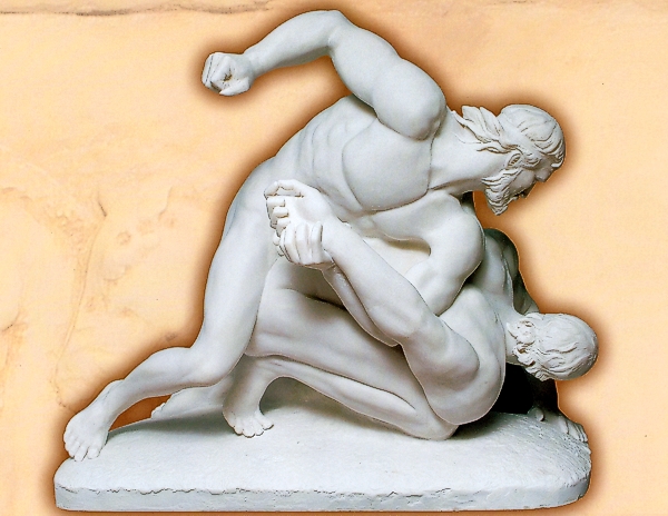 Two young Olympian Pancration wrestlers, the Greek Olympian fighting sport.