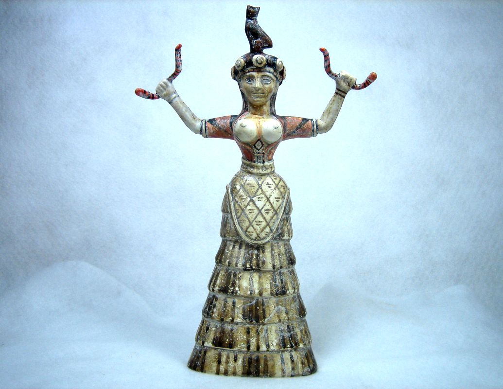This elaborate work of art is an exact reproduction of the statue dated 1600 BC, found in the excavations of the palace of Knossos in the early 1900’s.
