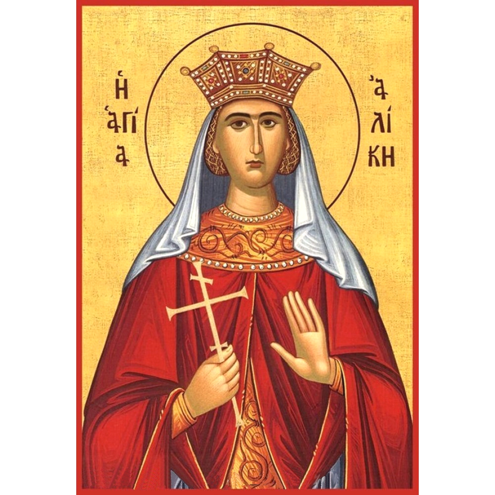 An exquisite Greek Orthodox Icon of St. Aliki, handmade & handpainted by an expert Greek hagiographer.