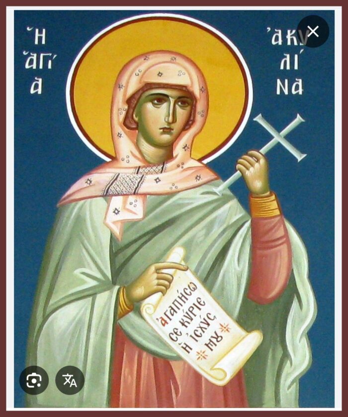 Aquilina was born of Christian parents in Biblus, Phoenicia. She was arrested during Diocletian’s persecution of Christian, and though only twelve, was beaten and decapitated by order of the magistrate, Volusian, when she would not renounce her Faith. Her feast day is June 13th.