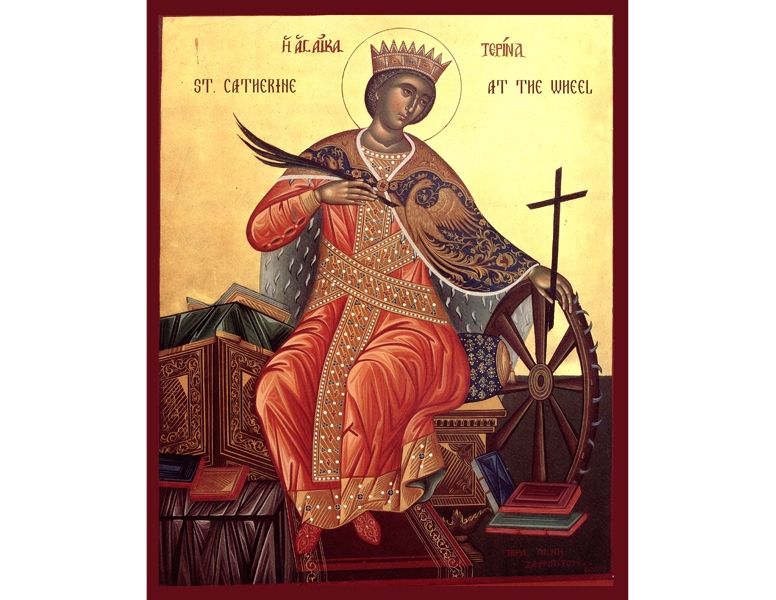 St. Catherine of Alexandria was a virgin, who was martyred in the early 4th century at the hands of the pagan emperor Maxentius. She was both a princess and a noted scholar, who became a Christian around the age of fourteen, and herself converted hundreds of people to Christianity.