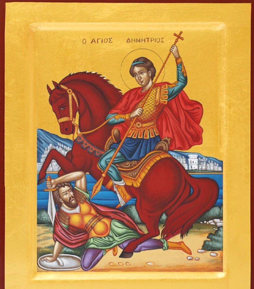 Saint Demetrios was a martyr, who lived in the early 4th century.During the Middle Ages, he came to be revered as one of the most important Orthodox military saints, often paired with Saint George. His feast day is 26 October and he is the patron Saint of the city of Thessaloniki.
