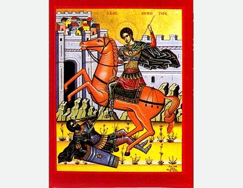 Saint Dimitrios of Thessaloniki was a martyr, who lived in the early 4th century.During the Middle Ages, he came to be revered as one of the most important Orthodox military saints, often paired with Saint George. His feast day is 26 October and he is the patron Saint of the city of Thessaloniki.