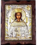 An exquisite silver & gold Greek Orthodox icon of St. Irene.