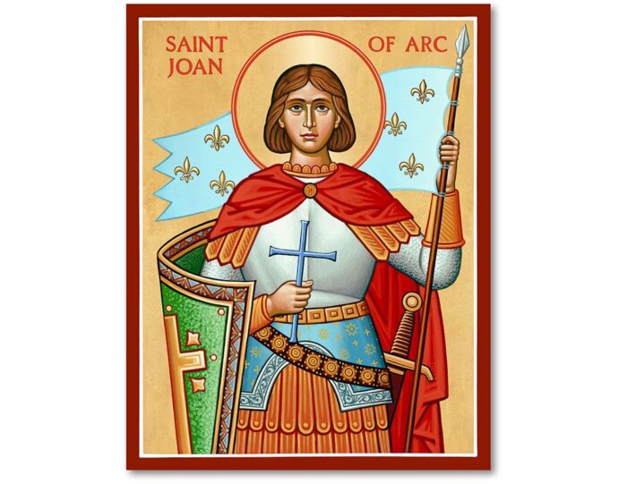 Saint Joan of Arc, national heroine of France, was born in 1412 during the Hundred Years War. At age 12 she began receiving visions of Saint Michael, as well as other angels and saints, telling her to drive out the English. Possessing remarkable mental and physical courage, Joan led the French army to victory over the British at Orleans when she was 18. Several additional victories led to Charles VII’s coronation.