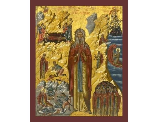 St. John was born and grew up in Egypt. Along with 35 other pious men he went to Cyprus to live in asceticism. There they became known for their abilities to cure sicknesses. The stories of St. John and his men reached the other ascetics on the island, and 39 of these joined the group. After a while all of them went on to Attaleia (Antalya) in the present Asia Minor, where another 24 ascetics joined them.The ascetic community, now consisting of 99 men, prayed to God to show them a place in which they would be able to live a secluded life. God told them to go to Crete, and so they sailed from Asia Minor to Crete.