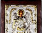 An exquisite silver & gold Greek Orthodox icon of St. Michael the Archangel.