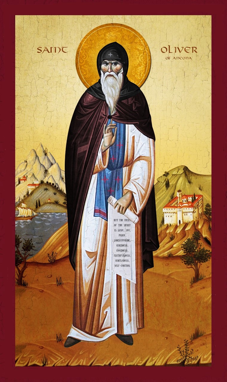 St. Oliver was a Benedictine monk from Santa Maria di Portonuovo, a community at the foot of Monte Conero, south of Ancona on the Italian Adriatic coast.