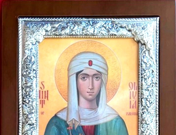 An exquisite silver Greek Orthodox icon of St. Olivia.