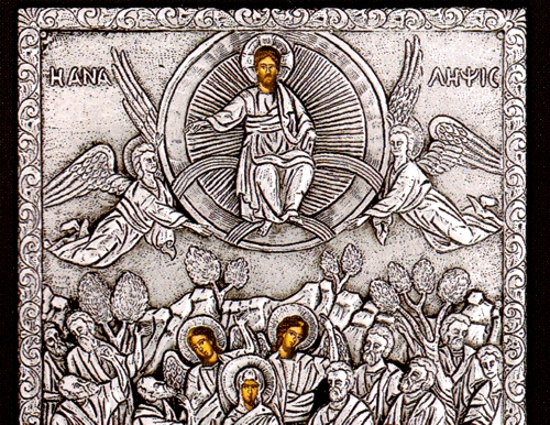 An exquisite silver Greek Orthodox icon of the Ascension.