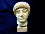 The Blond Ephebe. This wonderful bust, thus named because when it was found there were still vivid traces of his golden hair and blue eyes, is brimful of the new spirit. The hair is tied in two braids behind and falls low on the forehead in front. The face, with the tight lips, has a gloomy, instrospective expression. A work of the years just before the Persian catastrophe (485-480 BC). It is believed that the young athlete’s pose will have been the same as that of the Kritios boy.